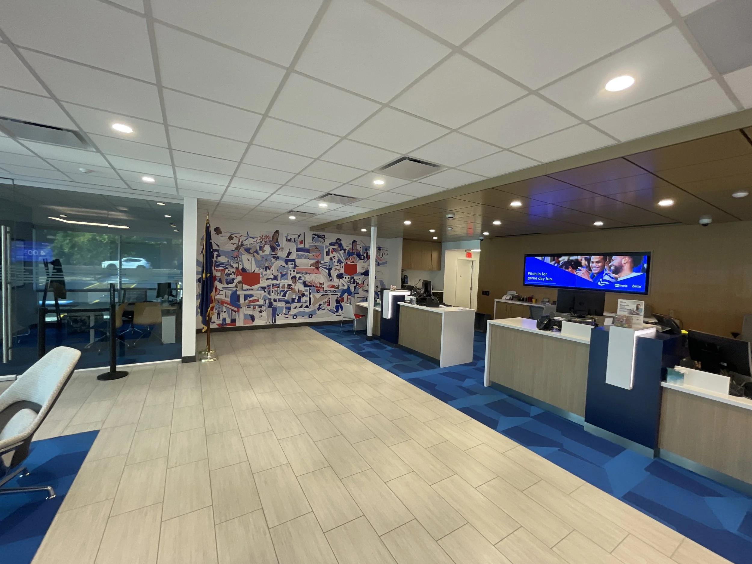 We completed a major open store remodel of an existing US Bank in South Salem, Oregon. This work was completed after hours and in multiple phases to limit disruptions to Bank operations. This project included new teller line, offices, conference room, restrooms and breakroom. New finishes were installed throughout as well as new interior and exterior lighting, new ductwork and ADA site improvements.